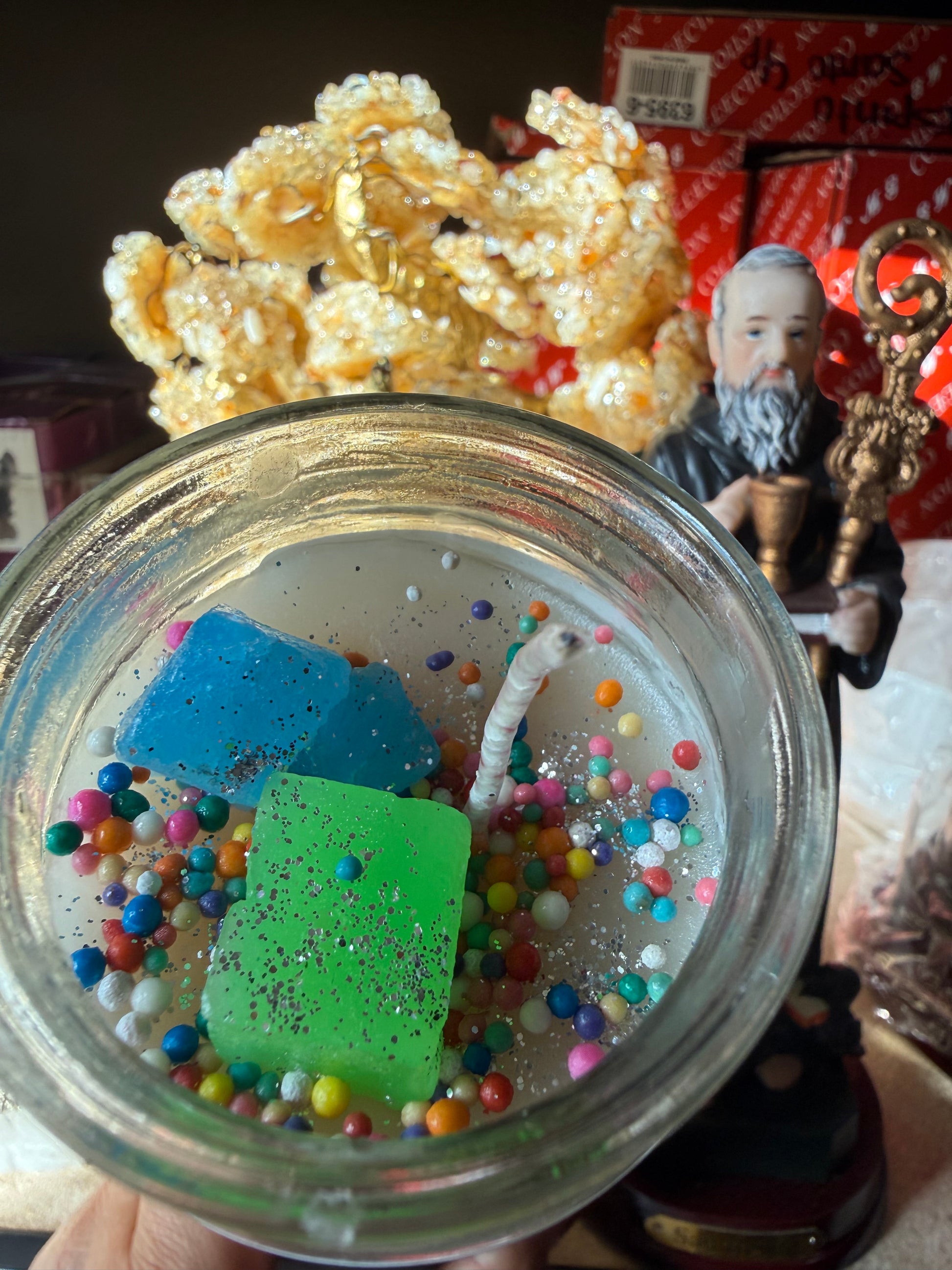 The San Antonio vela is lit to help reunite what has been lost—whether it’s love, peace, clarity, or direction. Known as the saint of finding what’s missing, this candle carries gentle, faithful energy to guide lost hearts and bring blessings back home. Traditionally known to call upon him when looking for love and to call in your person.